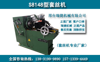 邢臺市瑞捷機械制造有限公司專業(yè)生產(chǎn)圓鋼套絲機,鋼管套絲機兩大系列,其特點主要展現(xiàn)為機頭的優(yōu)化改進(jìn),大幅度提高了加工螺紋絲頭的精確度和工作效率,有效解決了本行業(yè)在加工絲扣上端部易扭轉(zhuǎn)變形(絲扣加易擴口)、配件損耗高、加工效率低的技術(shù)難題。